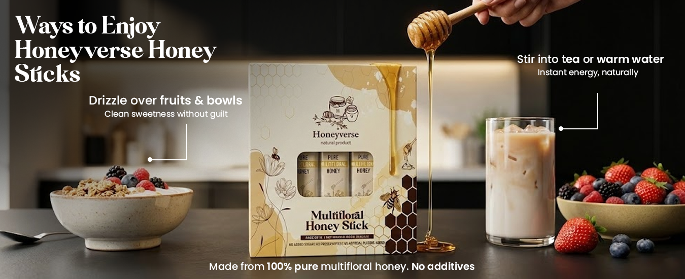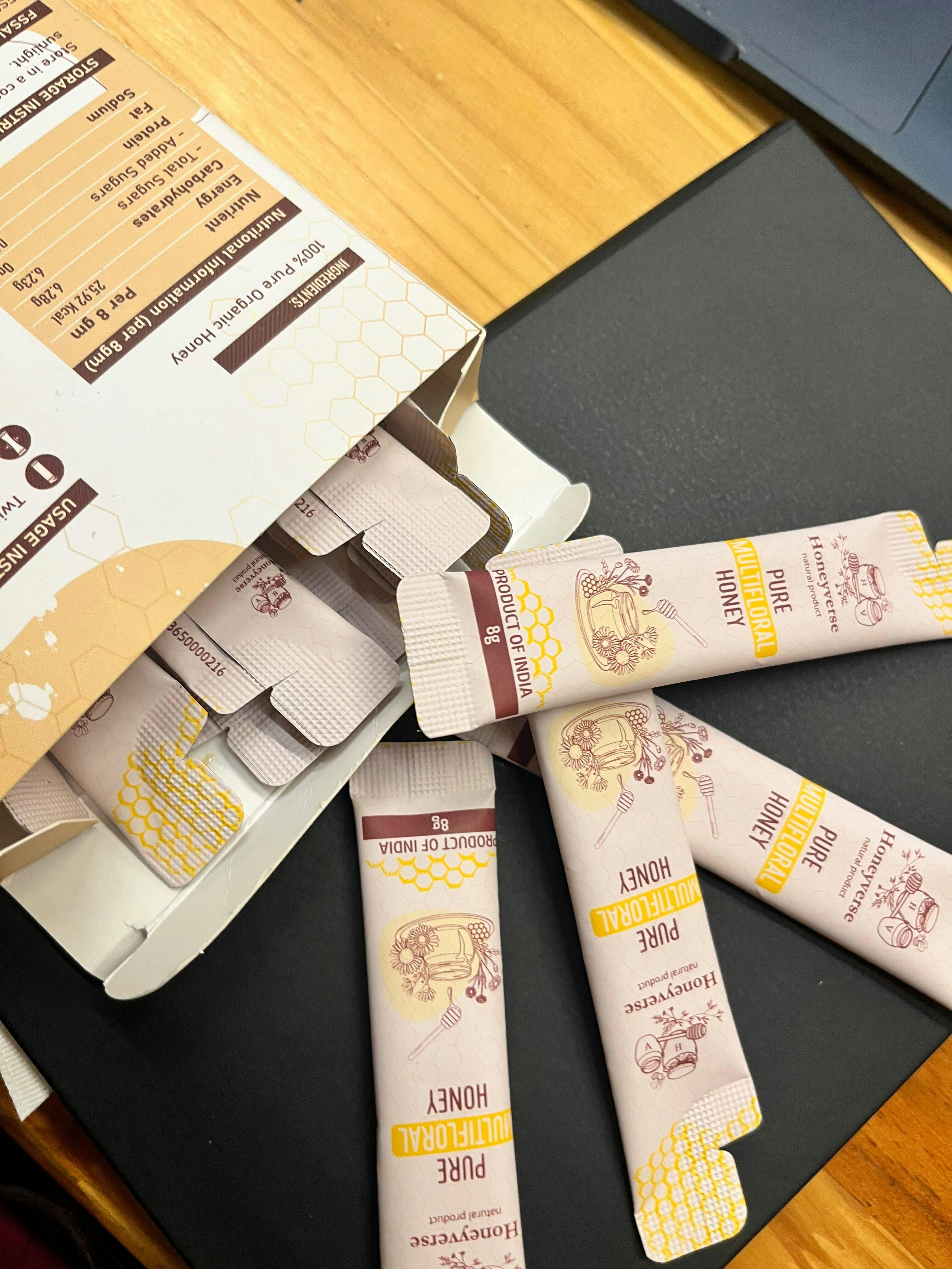 I ordered the Honeyverse multifloral honey sticks for convenience and ended up really liking the quality. The honey tastes natural and smooth, without any artificial sweetness. The single-serve sticks are very practical for office and travel. I usually add one to my morning tea or have it directly when I feel low on energy.
